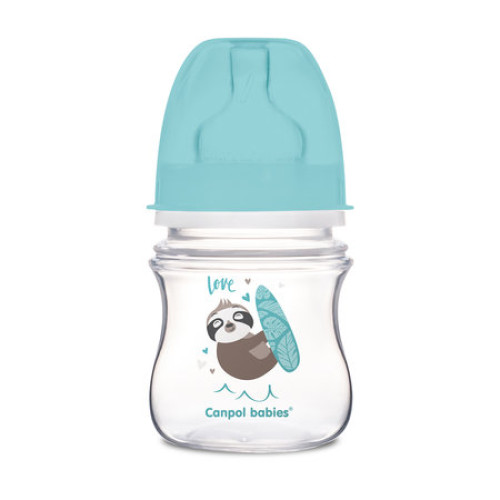 Antikoliková fľaštička so širokým hrdlom Canpol Babies Easy Start - Leňochod 240 ml- modrá