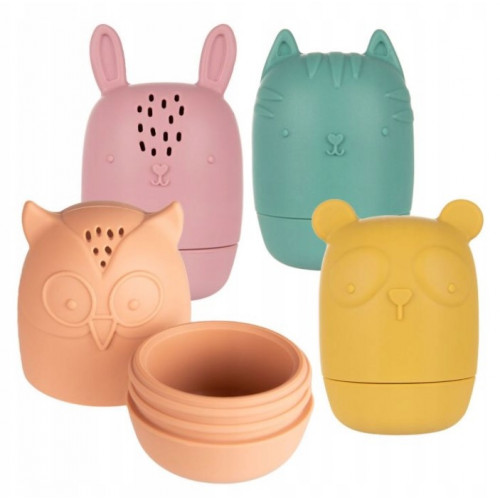 Sada 4 roztomilých hračiek do vane v rôznych farbách a textúrach spríjemní každý kúpeľ. Otvorená štruktúra hračiek umožňuje dôkladné umytie a vysušenie hračiek vo vnútri, zabraňuje hr..