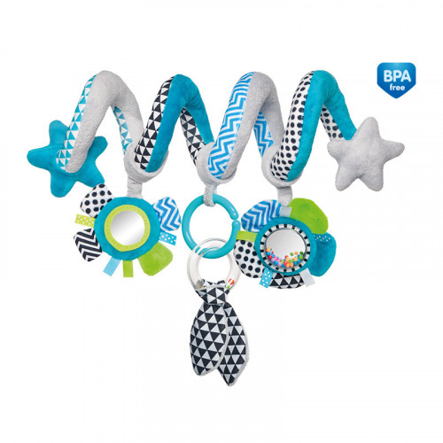 Rôzne farby a materiály rozvíja hmat dieťaťa. Zvoniaci prvky budí jeho pozornosť. Hračka je ľahká a príjemná na dotyk.