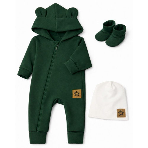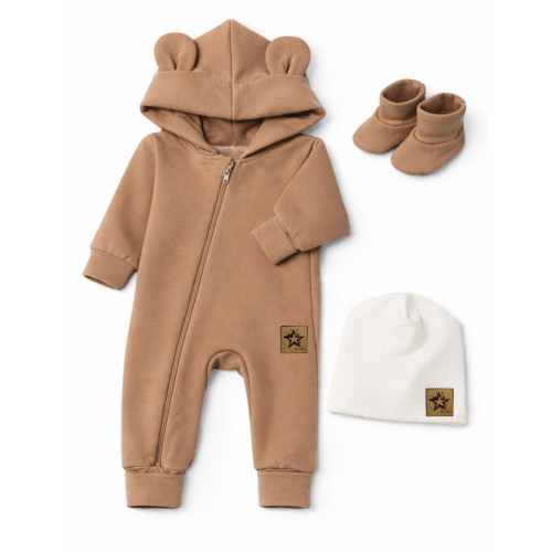 Zateplený overal s kapucňou TEDDY + dvojvrstvová čiapka + topánočky Baby Nellys.