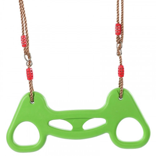 Detské gymnastické kruhy s plastovým držadlom v zelenej farbe s závesnými krúžkami a výškovo nastaviteľnými lanami.Nenahraditeľný pomocník pre objaviteľov vonkajšej zábavy na detskom ihrisku alebo do ..