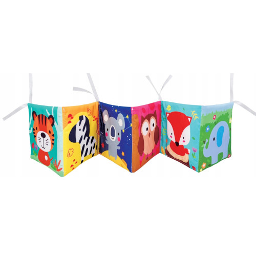 Látková knižka pobaví najmenšie farebnými obrázkami. Na jednej strane harmoniky sú roztomilé zvieratká a na druhej vozidlá. Jednotlivé stránky knihy sú vyrobené zo ..