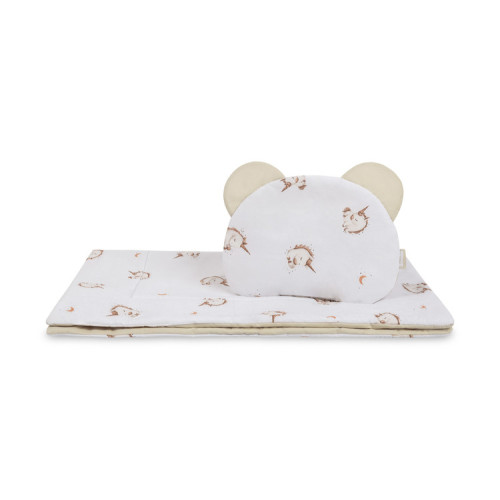Táto krásna súprava vankúšika a dečky je vyrobená z jemného mušelínu a 100% bavlny, vďaka čomu zaistí vášmu dieťatku maximálne pohodlie.