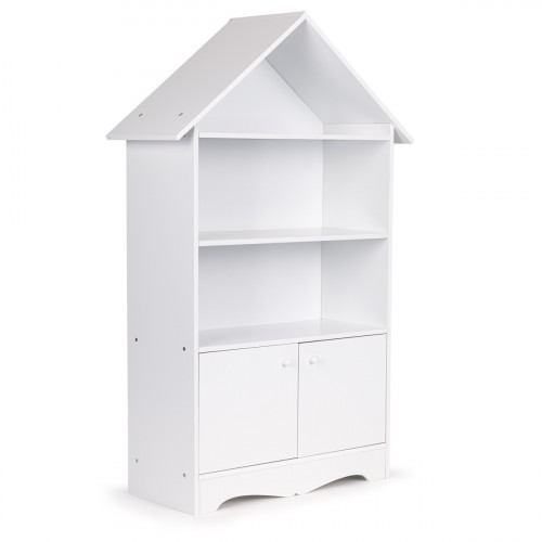 Regál so skrinkou v tvare domčeka. Skvelý nábytok do detskej izby. Univerzálna biela farba. 3 funkčné police a uzatvárateľná skrinka. Pevná, stabilná konštrukcia. Pomôže udržať poriadok. Skvele sa ho..