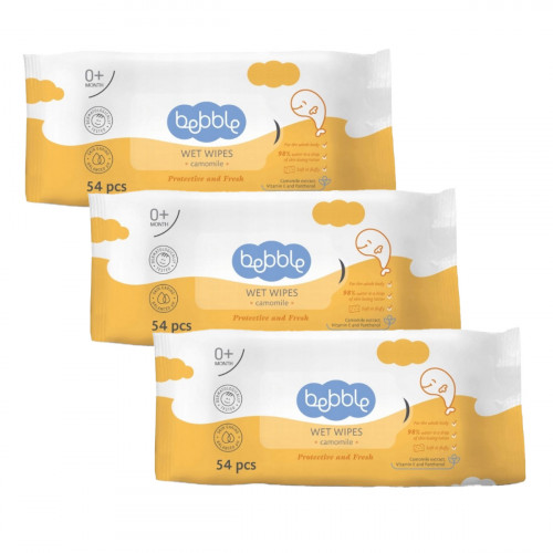 Výhodné balenie - Vlhčené čistiace obrúsky s harmančekom - 3x 54 ks. Upozornenie: Nesplachujte utierky do záchodu ani do iných odpadov!!